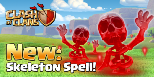 Skeleton Spell یکی از جدیدترینهای آپدیت می کلش آف کلنز است که در تاون هال 9 به بالا موجود خواهد بود. کاربر با این نیرو یا اسپل میتواند در وسط میدان نبرد اسکلتهای قرمز رنگ را برای تخریب ساختمانها و دفاعیهای حریف فراخوانی کند که بهاحتمالزیاد این ویژگی در بخش اسپل اضافه خواهد شد.