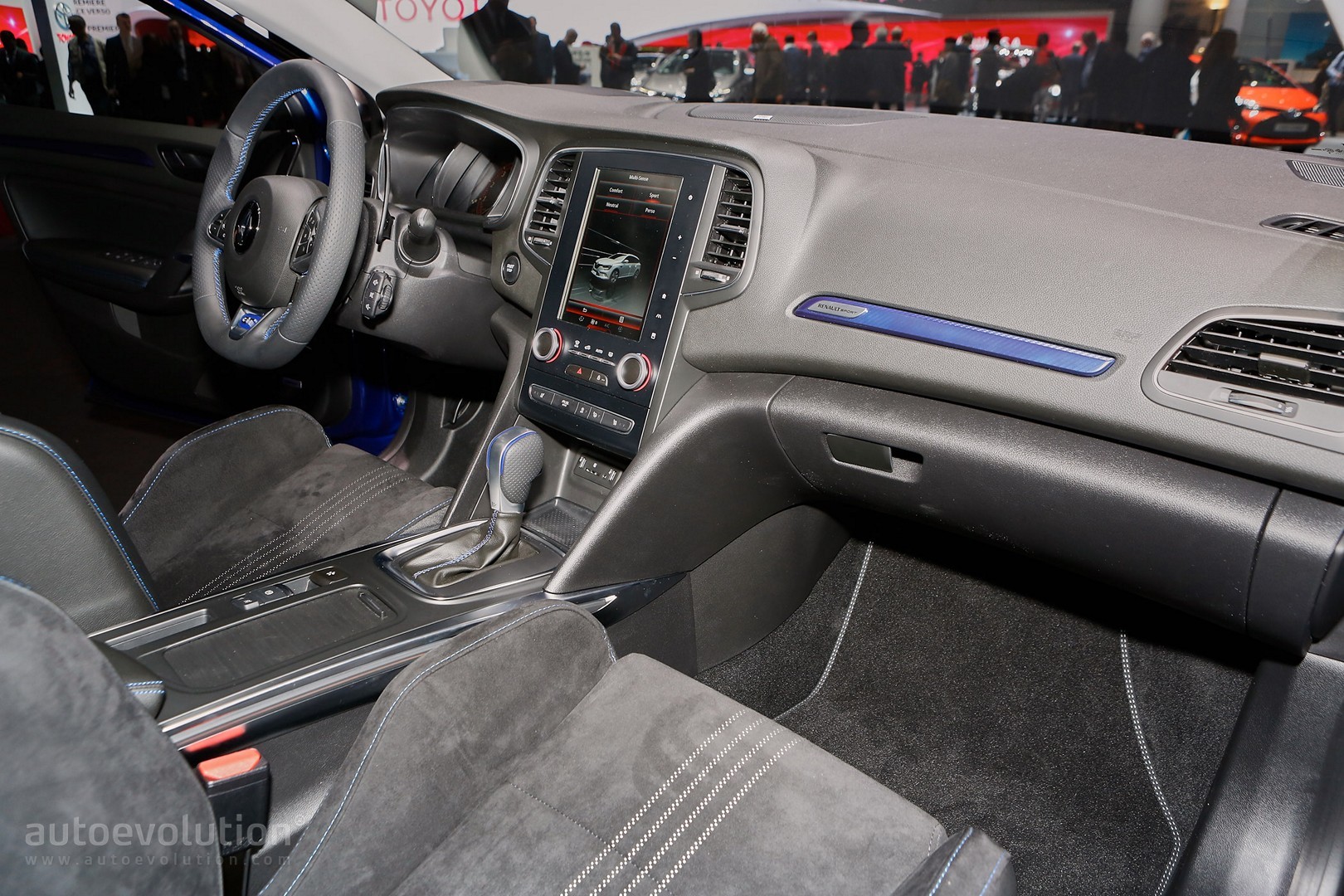 در داخل رنو مگان استیشن شما تجربه کامل اسپرت را تجربه می کنید. صندلی جدید با پشت سری ، دوخت آبی و آرم ورزشی ، بسیار راحت پارچه ای و روکس های Alcantara با راه راه آبی و یا سیاه و سفید همگی هویت جدید مگان اسپرت را هر چه بیشتر آشکار می کنند.در تمام جای جای داشبورد و بدنه داخلی از وجود یک نوار یا تریم آبی رنگ بهره می برد که بک هارمونی و یک تنوع رنگ در کابین یکنواخت این خودرو ایجاد می کند. فرمان از نوع ورزشی و به شدت ارگونومی بهینه سازی شده است، پدال های آلومینیومی و اهرم دنده دارای یک طراحی اسپرت هستند .