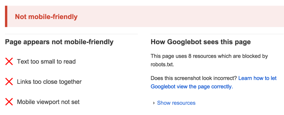 مشکلات تطبیق بر الگوریتم های mobile friendly گوگل