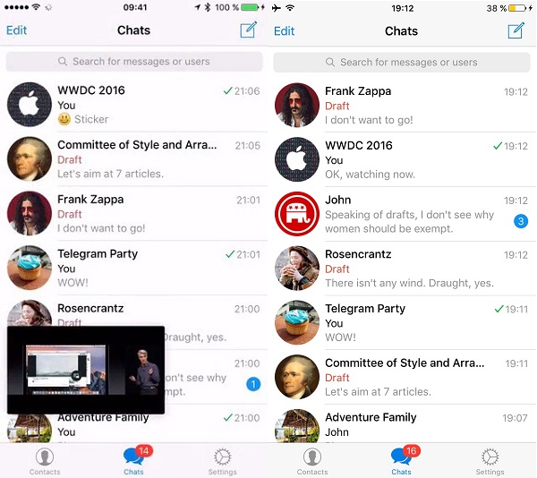 نسخه iOS از برنامه تلگرام که مدتی است از فواید این پلیر برخوردار است هم اکنون در نسخه 3.1 با ویژگی‌های جدیدی همراه شده است و کاربران می‌توانند ضمن تماشای یک ویدیوی خاص به استفاده از برنامه تلگرام و گوشی خود ادامه دهند.