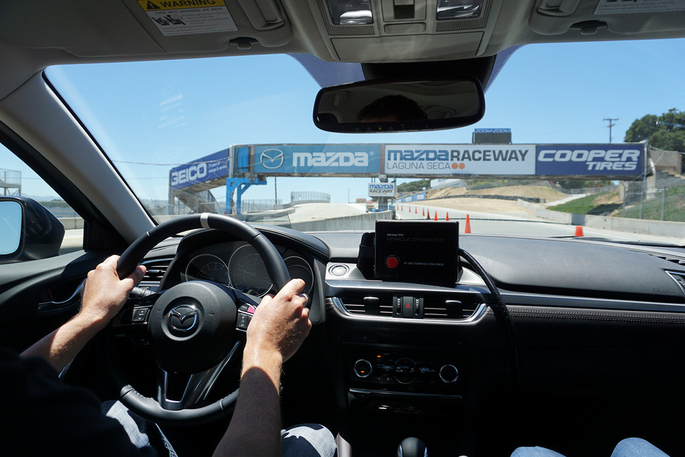 زمانی که می خواهید سر پیچ، بپیچید انتقال وزن به جلو بسیار مناسب است، زیرا وزن و کنترل بیشتری روی لاستیک های جلو اعمال میشود. کنترل جی-وکتورینگ (G-VECTORING CONTROL) سیستم جدید شرکت مزدا است .روی سیستم هدایت حسگرهایی وجود دارد که حتی زمانی که چرخ را به اندازه یک دهم یک درجه حرکت در می آورید، مطلع می شوند. این داده ها را سیستم جدید مزدا دریافت میکند و به موتورانتقال می دهد تا به سرعت گشتاور خود را همزمان با چرخاندن چرخ ها، کمی کاهش دهد.