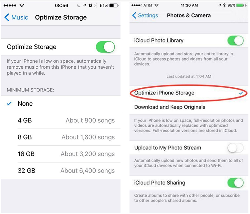 همچنین ویژگی Optimized Storage در این سیستم عامل تعبیه شده یکی از کارهای آن، پاک کردن موزیکهایی است که برای مدت طولانی به آنها گوش ندادهاید. همچنین Optimized Storage میتواند عکسهای موجود در دستگاهتان را با یک نسخه کم حجم تر جایگزین کند تا فضای داخلی بیشتری در دسترس داشته باشید.