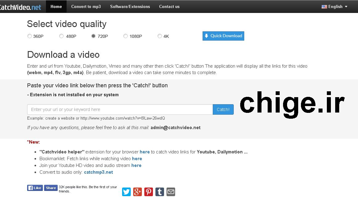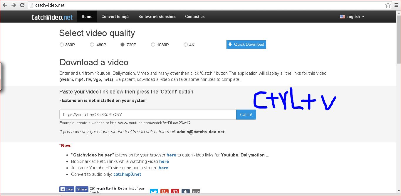 برای پیست کردن میتوانید از کلید های ترکیبی ctrl+v استفاده کنید. خب حالا گزینه catch که کنار url است را کلیک کنید. دانلود از یوتیوب