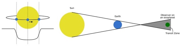 محققان دانشگاه Belfast و بخش تحقیقات منظومه شمسی موسسه مکس پلانک آلمان ، در تلاشاند تا این ایده را به سیاره خودمان نسبت دهند و به دنبال این پرسش باشند که "چگونه یک رصدگر بیگانه میتواند منظومه شمسی را رویت کند". در همین راستا این موضوع را طرح ریزی کردند که کدام قسمت از آسمان منظره ای بهتر از سیارات منظومه شمسی در هنگام گذر از مقابل خورشید از دید رصدگر بیگانه بوجود میآورد. و برای هریک از سیارات منظمه شمسی مسیری مشخص مشخص کردند تحت عنوان "منطقه گذر" یا Transit Zone. نکته جالب توجه اینجاست که سیارات کوچک سنگی یعنی عطارد ، زهره ، زمین و مریخ نسبت به سایر غول ها گازی منظومه شمسی بسیار آسان تر قابل رویت هستند.