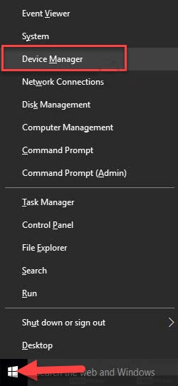 مرحله 1. بر روی دکمه منوی Start راست کلیک کرده و  Device Manager را انتخاب کنید