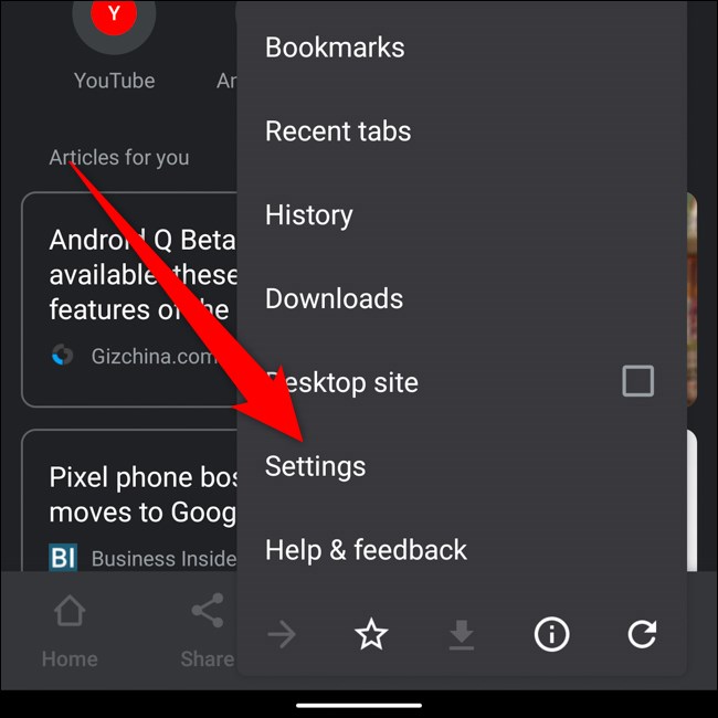 "تنظیمات" را در پایین منوی پاپ آپ انتخاب کنید.