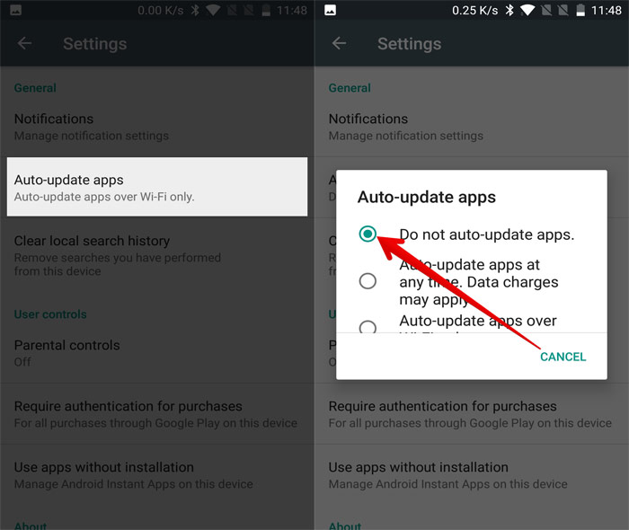 مرحله 5. تنظیمات را در Play Store در Android انتخاب کنید. به "برنامه های به روز رسانی خودکار" بروید و "برنامه ها را به روز نکنید" را انتخاب کنید.
