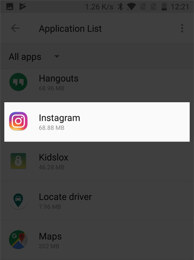 مرحله شماره 3. اکنون ، برنامه اینستاگرام را از لیست انتخاب کنید.