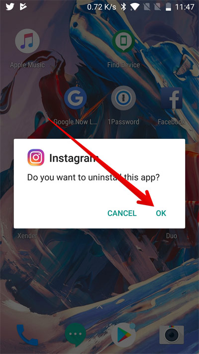 روش 2: برنامه نصب اینستاگرام را در Android حذف و نصب مجدد کنید.