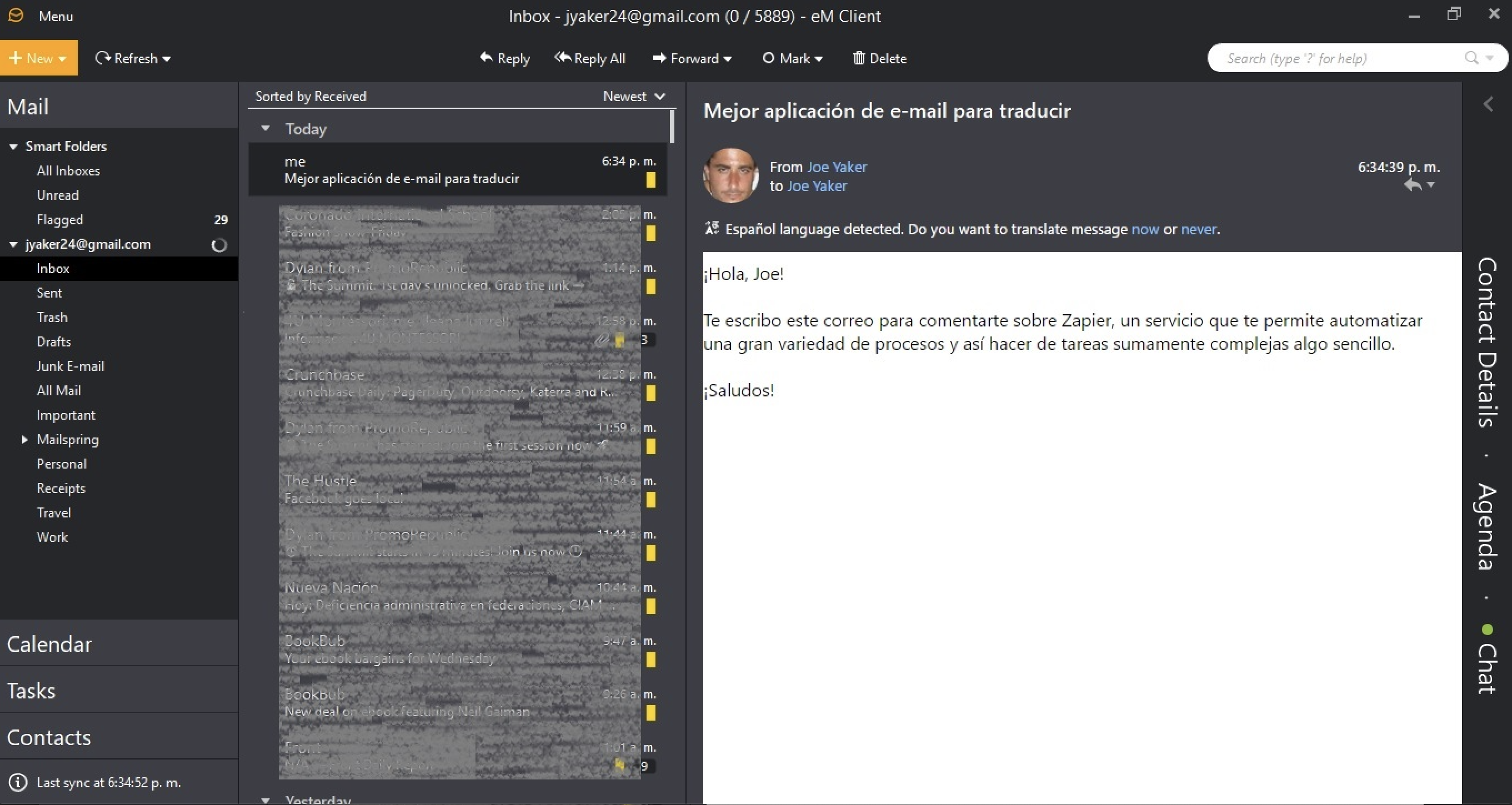 eM Client تموم ویژگی هایی که از یک ایمیل کلاینت انتظار دارید را دارد و همچنین میتواند ایمیل های شما را به 39 زبان ترجمه کند.