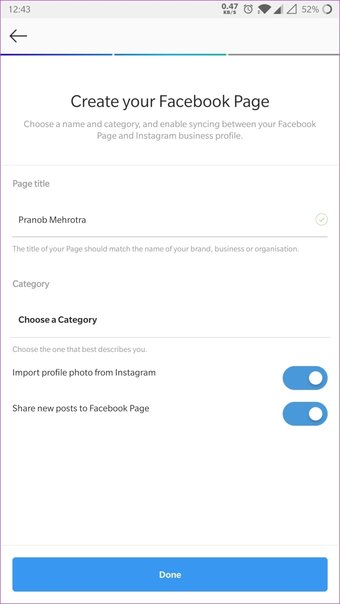 مرحله چهارم: برای اینکه این کار عملی شود ، باید یک صفحه فیس بوک داشته باشید.بنابراین اگر ندارید یکی را درست کنید و سپس در این مرحله آن را به حساب اینستاگرام خود پیوند دهید.