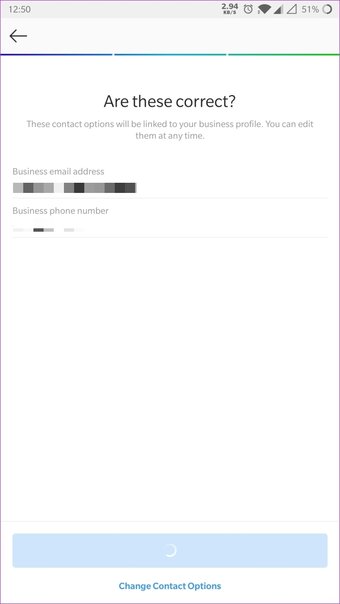 مرحله 3: در اینجا ، روی گزینه Switch to business account ضربه بزنید و روی گزینه Continue ادامه دهید تا به صفحه اتصال به Facebook برسید.