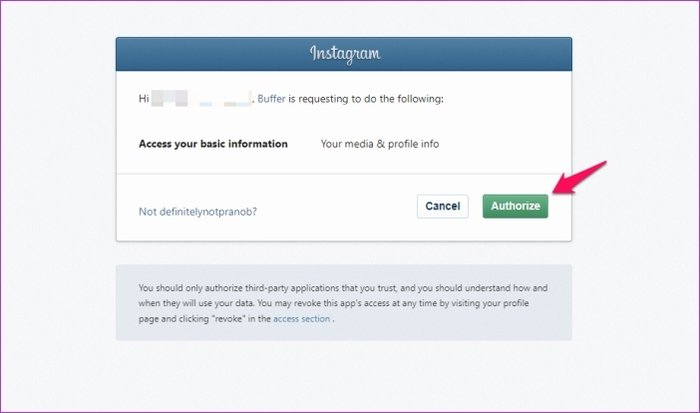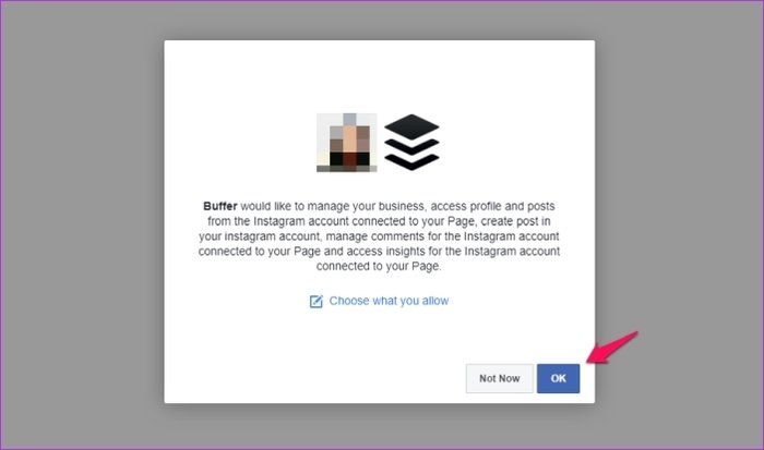 مرحله هشتم: با کلیک بر روی OK ، بافر را مجاز به ارسال در اینستاگرام کنید.