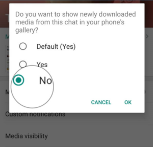 جلوگیری از ذخیره و نمایش عکس و فیلم های واتساپ در گالری برای یک مکالمه یا گروه خاص