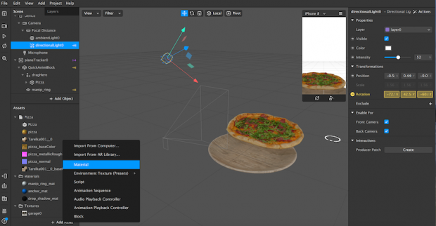 در ادامه مراحل آموزش ساخت افکت و فیلتر اینستاگرام، نوبت به انتخاب یک جسم سه بعدی میرسد. این مورد را میتوانید خودتان اضافه کنید یا از کتابخانههای خود پلتفرم استفاده کنید. در حال حاضر فیسبوک، در حال آمادهسازی یک کتابخانه رایگان از تصاویر برای این پلتفرم است. با این امکانات، به جز تصاویر امکان اضافهکردن صوت و ویدیو نیز وجود دارد.
