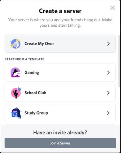 اکنون دیسکورد از شما میخواهد دوستان خود را نیز به سرور شخصیتان دعوت کنید. اگر میخواهید این مرحله را بعدا انجام دهید، علامت ضربدر گوشه بالا سمت چپ را انتخاب کنید.