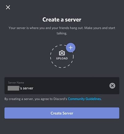 پس از آن برای لایو استریم در دیسکورد، باید گزینه ایجاد سرور را انتخاب کنید.