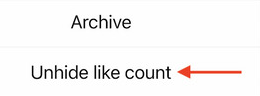 برای نمایش دوباره تعداد لایک­ها، بدیهی است که می­توانید همین مسیر را رفته اما گزینه  Unhide Like Countرا انتخاب نمایید.