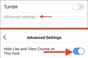 شما می­توانید پیش از به اشتراک‌گذاشتن هر پستی نیز به مخفی کردن تعداد لایک­ های آن بپردازید. این کار توسط گزینه Advanced Settings هنگام نوشتن کپشن برای پست میسر می­شود.