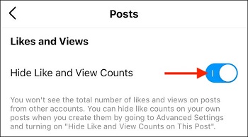 در نهایت علامتHide Like and View Counts  را انتخاب کرده تا روشن شود. به این صورت لایک‌ ها مخفی می­شوند.