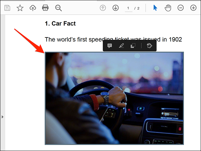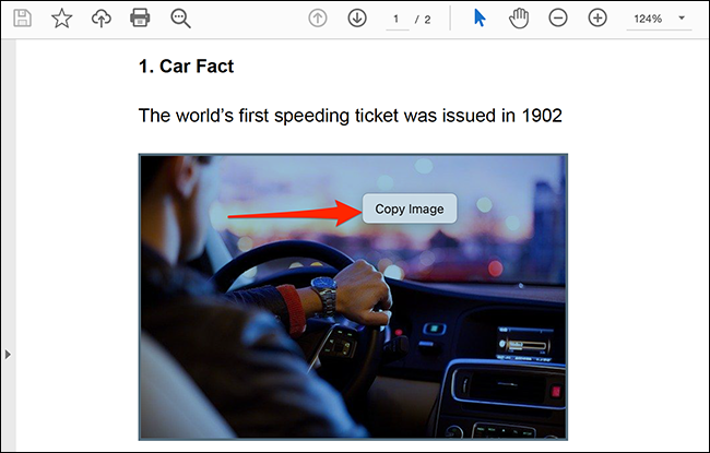 اکنون به صفحه ای از PDF بروید که تصویر مورد نظر شما در آن قرار دارد. بر روی تصویر کلیک کنید تا بتوانید آن را انتخاب کنید.