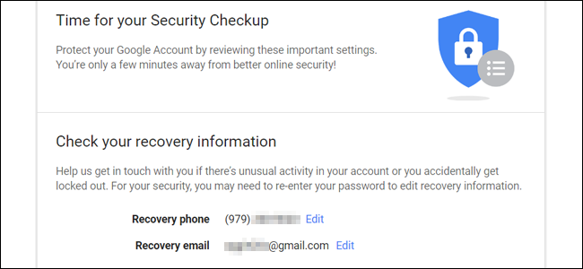 پس از ایجاد یک رمز عبور جدید، گوگل به شما اجازه می دهد تا تنظیمات امنیتی مرتبط با حساب های Gmail (و حساب کاربری گوگل خود را چک کنید). ما به شدت توصیه می کنیم که یک شماره تلفن و یک ایمیل پشتیبان اضافه کنید، اگر شما این موارد را با حساب خود داشته باشید. آن ها اجازه بازیابی آسان را از طریق یک کد ۶ رقمی که توسط ایمیل یا پیام متنی تحویل داده می شود را خواهند داد.