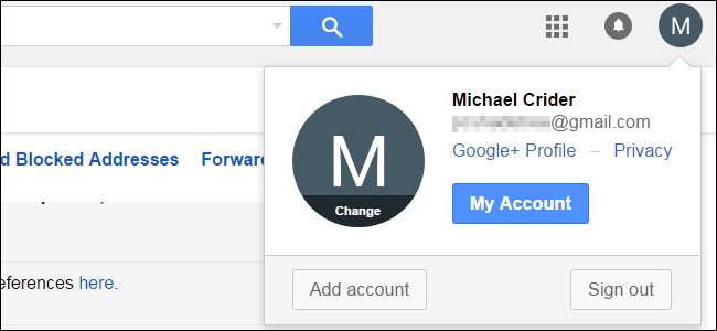 پس از ورود به سیستم حساب Gmail خود ، با کلیک روی تصویر نمایه خود به صفحه تنظیمات حساب Google بروید (در صورت عدم تنظیم آن فقط حرف اول نام شماست) در گوشه بالا سمت راست، سپس"My Account - حساب من " را انتخاب کنید.