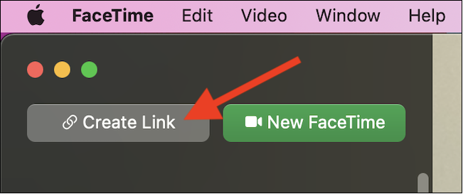 - اگر از نسخۀ macOS 12 Monterey استفاده می کنید، در قسمت بالای برنامه فیس تایم بر روی گزینۀ Create Link ضربه بزنید.