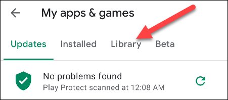 در این مرحله به تب «Updates» در صفحه My Apps & Games می روید. وارد تب «Library» شوید.