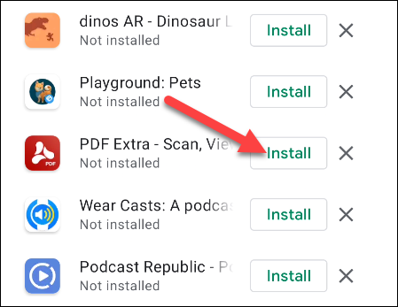 برای بازیابی یک برنامه، کافی است بر روی گزینه «Install» مربوط به آن بزنید.