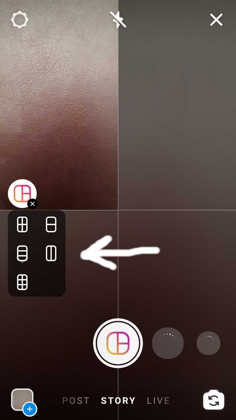 4- کولاژ یا collage استوری را از بین گزینههای مختلف انتخاب کنید. کولاژ نشاندهنده چیدمان عکسها است. میبینید که روشهای مختلفی برای قراردادن تصاویر در کنار یکدیگر وجود دارد که از دو عکس در استوری تا حداکثر شش مورد را شامل میشود.