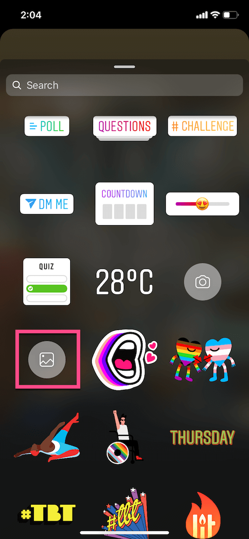 3- در قسمت استیکر، پایینتر رفته و روی گزینه Gallery کلیک کنید.