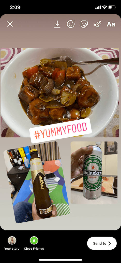 8- بعد از اینکه همه عکسها را اضافه کردید، میتوانید متن، استیکر یا افکت هم به استوری خود اضافه کنید.