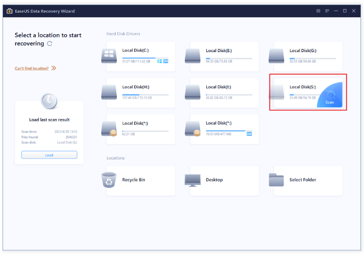 این برنامه، تمام درایوهای ذخیرهسازی اتصال یافته به کامپیوتر شما را در قالب داشبوردهایی نشان میدهد. با انتخاب هریک از پوشهها میتوانید مسیر مشخصی را در کامپیوتر خود برای بازیابی اطلاعات اسکن نمایید. یکی از محدودیتهای این برنامه، آن است که نمیتوان بهطور همزمان چند درایو را برای جستوجوی فایلهای از دسترفته اسکن نمود؛ همچنین امکان ذخیره نتایج جستوجو وجود ندارد.