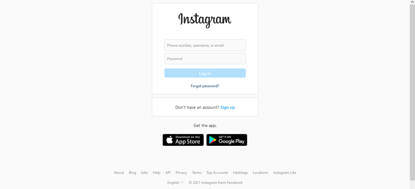 ازآنجاییکه نسخه اینستاگرام وب روزبهروز بیشتر در حال نزدیک شدن به نسخه موبایلی آن است، احتمالاً بهخوبی با دیدن این تصویر متوجه میشوید که چهکار باید بکنید؛ اگر از قبل حساب کاربری دارید، در کادر اول یوزرنیم، ایمیل و یا شماره موبایلی که با آن حساب را ساختهاید باید وارد کنید و در کادر بعد، رمز عبور خود را بزنید.