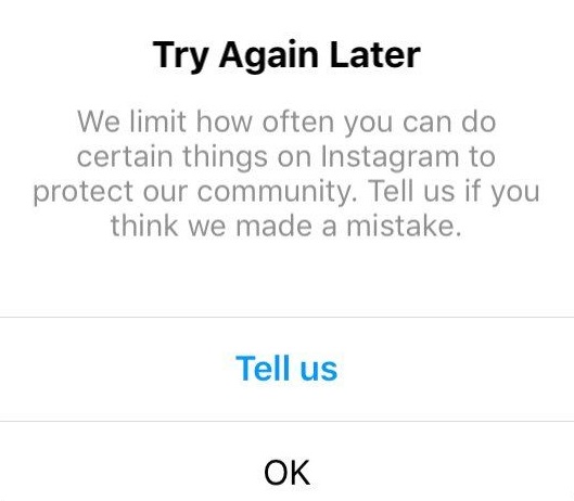 "ما برای محافظت از کاربران خود، تعداد دفعاتی که میتوانید کارهای خاصی در اینستاگرام انجام بدهید را محدود میکنیم. اگر فکر میکنید که ما در اشتباه هستیم به ما بگویید".