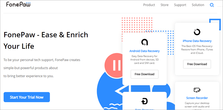 نرم افزار FonePaw یک ابزار بازیابی اطلاعات جذاب و کاربرپسند است. با استفاده از این نرمافزار میتوانید انواع رسانهها و فایلهای متنی را با سرعتی باورنکردنی بازیابی کنید. این برنامه یکی از سریعترین ابزارهای بازیابی اطلاعات موجود است. ما این ابزار را به همه کاربران دارای گوشی اندروید که سیستم عامل اندروید 2.3 تا 9.0 دارند به شدت توصیه میکنیم.
