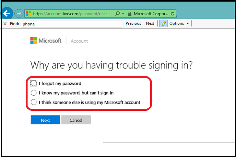 استفاده از حساب کاربری مایکروسافت به منظور بازیابی رمز عبور