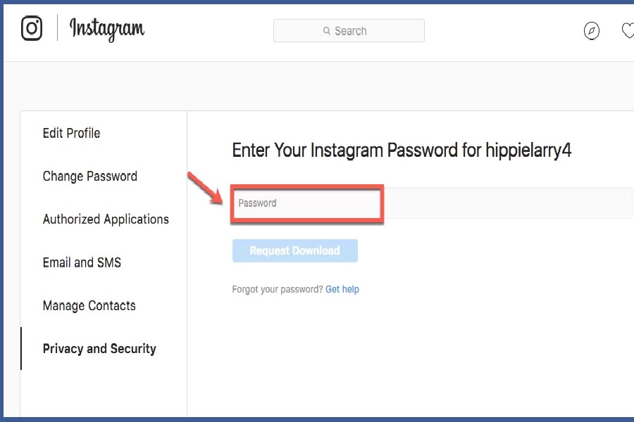 To continue, please re-enter your password: بعد از انتخاب دلیل حذف اکانت اینستا، در این قسمت رمز عبور اکانت خود را وارد کنید.