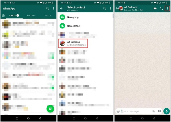 در این بخش از روشهای ریپورت کردن مخاطب و گروه میخواهیم به چگونگی گزارش دادن پیامها در واتساپ بپردازیم. شما به راحتی میتوانید یک پیام را در مسنجر واتساپ ریپورت کنید. به این منظور وارد این پیامرسان شوید. سپس آن چتی که دارای پیامهای توهینآمیز است را انتخاب کنید. روی آن پیام فشار دهید و سپس برای چند ثانیه آن را نگه دارید. در نهایت از بالا و بخش راست، منوی سه نقطه را انتخاب کنید.