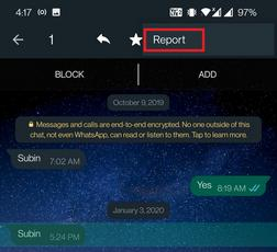 یکی از قابلیتهای قابل توجه پیامرسان واتساپ این است که به تمامی کاربران این امکان را میدهد تا تصاویر و ویدیوهایی را ارسال کنند که پس از سین خوردن ناپدید میشوند. کاربران میتوانند این مورد را هم را در واتساپ گزارش بدهند. به منظور ریپورت کردن در واتساپ باید ابتدا وارد چت شوید و سپس روی پیام View once فشار دهید و آن را به مدت چند ثانیه نگه دارید.