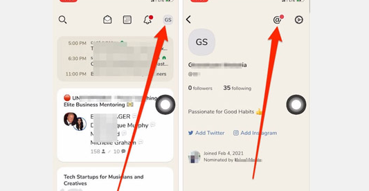توجه داشته باشید که پس از دی اکتیو کردن اکانت تا 30 روز وقت دارید آن را مجددا به حالت فعال درآورید. در غیر این صورت اکانت کلاب هاوس به طور دائم حذف میشود. پس از باز کردن اپلیکیشن روی تصویر پروفایل در گوشه بالا سمت راست ضربه بزنید.