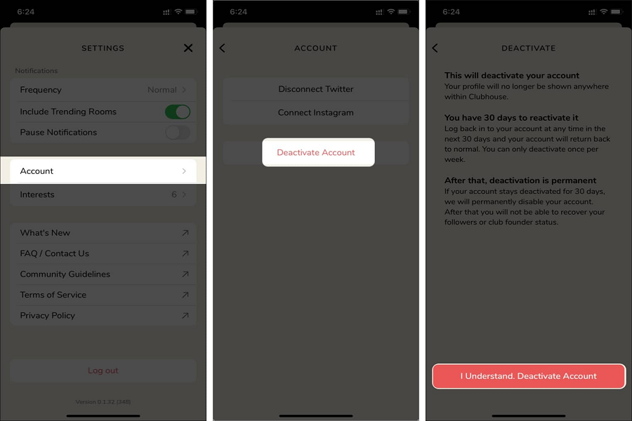 چگونگی دیاکتیو کردن حساب کلاب هاوس