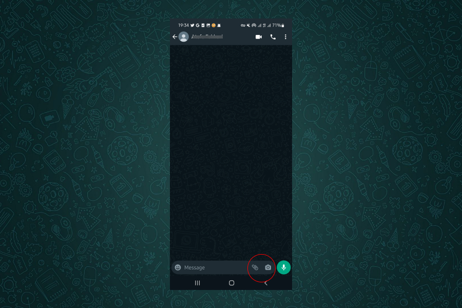 ۲. بعد از ورود به چت، برای ارسال عکس یا ویدیو، باید دکمه ضمیمه (نشان "+") را لمس کنید.