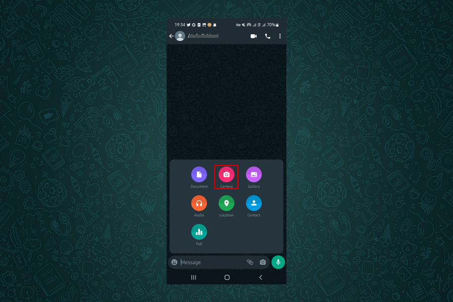 ۳. پس از لمس دکمه ضمیمه، گزینه دوربین را انتخاب کنید تا بتوانید عکس یا ویدیوی خود را ضبط کنید.