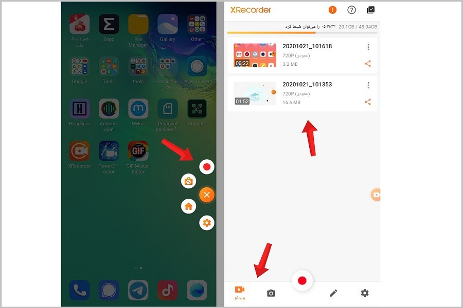 - حالا فایلهای ضبطشده در گالری دستگاه شما قرار دارند