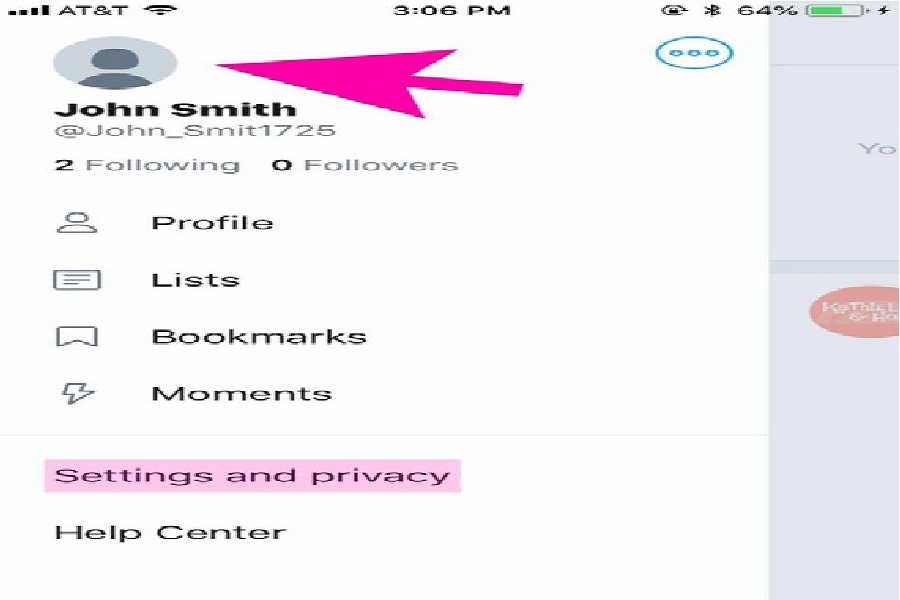 - ابتدا بر روی عکس پروفایل خود در گوشه سمت چپ بالای تصویر ضربه زده و سپس گزینه setting & privacy را انتخاب کنید