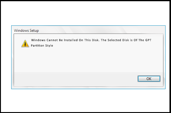 ارور Windows Cannot Be Installed to This Disk به دلیل فرمت MBR دیسک