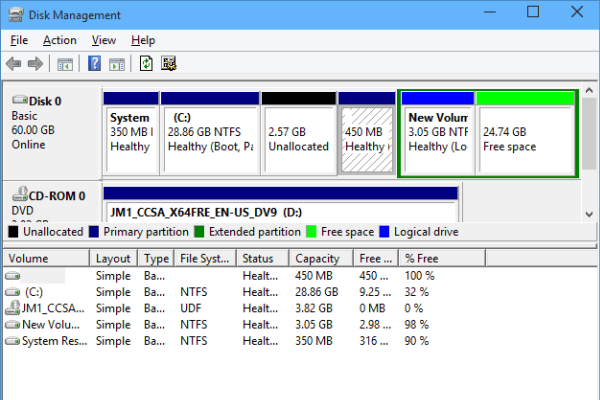 اگر روی سیستم شما ویندوز نصب است و میتوانید به تنظیمات آن دسترسی داشته باشید، میتوانید برای رفع ارور Windows Cannot Be Installed to This Disk با خطای نوع پارتیشن دیسک، به سراغ تنظیمات DISK MANAGEMENT بروید. با ورود به این بخش، امکان اضافه کردن و حذف پارتیشنهای مختلف را خواهید داشت. همچنین میتوانید در صورت نیاز، فرمت درایوها را هم تغییر دهید. به همین خاطر، توصیه میکنیم از ویندوز نصب شده روی سیستم خود دارید، از این روش برای تغییر فرمت پارتیشن از MBR به GPT و برعکس استفاده کنید.