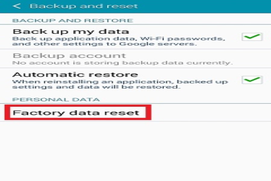 - مرحله ۲: گزینه .Factory Data Reset را انتخاب کنید
